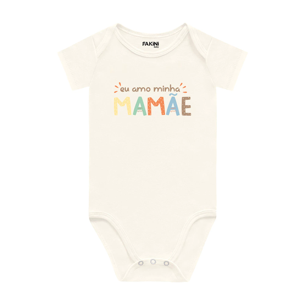 Body para bebê com estampa “Amo Minha Mamãe”. Confeccionado em algodão macio, proporciona conforto e liberdade de movimento para o bebê. Ideal para o dia a dia e para presentear.