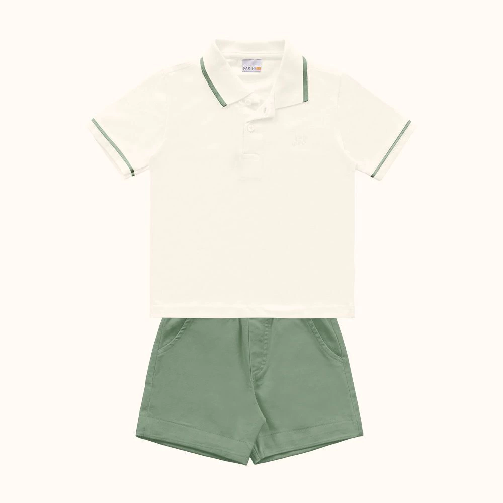 Conjunto Infantil Polo e Bermuda Verde Militar - Elegância Casual