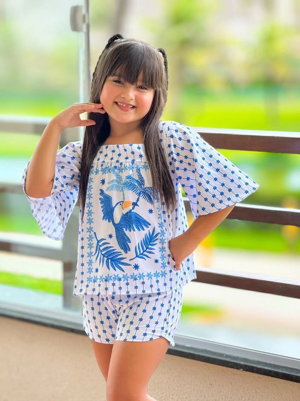 Vista sua pequena com a alegria e a leveza do verão brasileiro neste conjunto encantador. Perfeito para passeios ao ar livre, festas e momentos de diversão sob o sol.